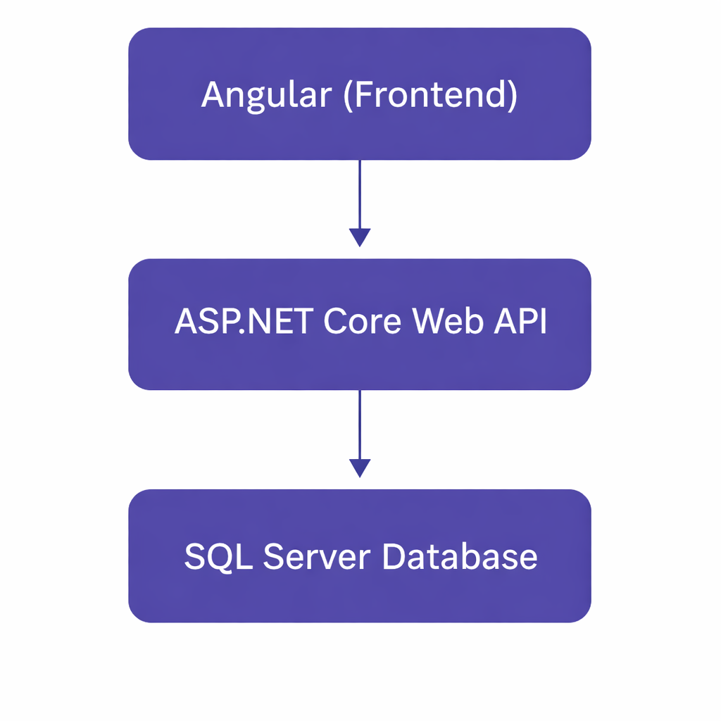 ASP.NET Core Web API handles the business logic. It processes requests from Angular,